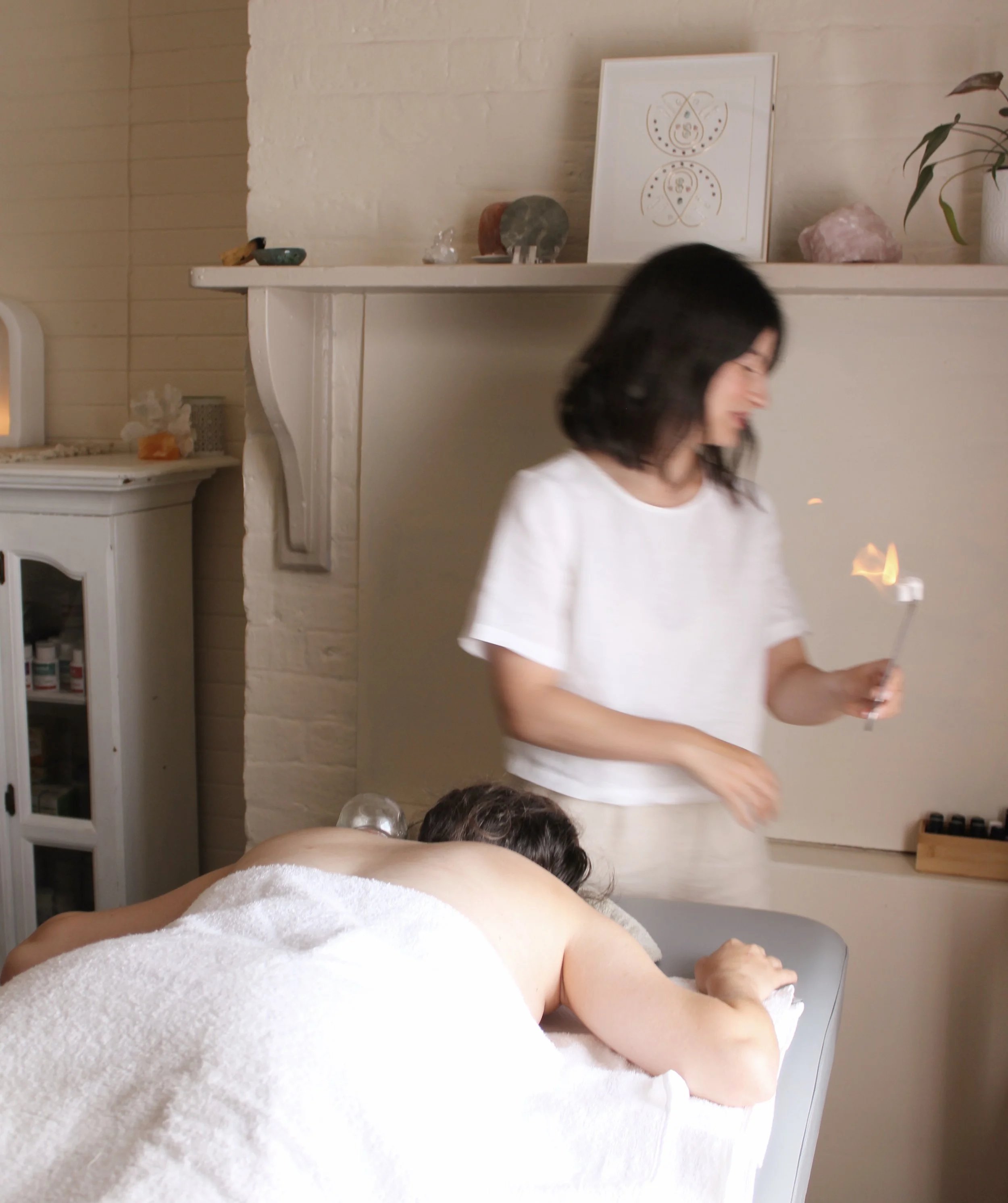 Cupping is not dissimilar to a deep tissue massage with suction and decompression. Cupping may help to keep the body in balance, increase overall blood flow and work to reduce pain.